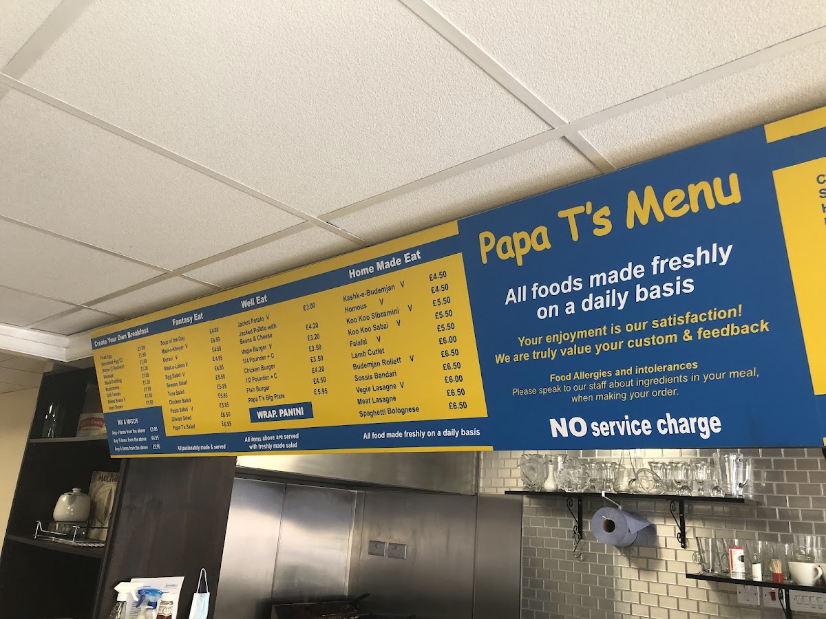 Papa T's Menu